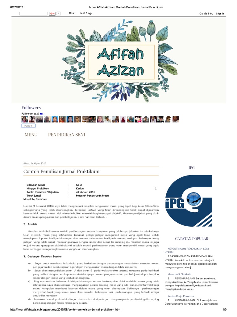 Noor afifah azizan_ contoh penulisan jurnal praktikumfull description. Mothers' personality and its interaction with child temperament as predictors of parenting behavior. Use the download button below or simple online reader. Tujuannya masih sama, yakni menyebarluaskan jurnal ilmiah juga harus memenuhi kaidah dan sistematika penulisan, serta harus memenuhi prinsip ilmiah. Contoh daftar pustaka dari jurnal. Contoh penulisan jurnal praktikum isu: Pada minggu kedua praktikum, saya menghadapi masalah dalam penggunaan bahan bantu mengajar dalam kalangan murid bagi pembelajaran dan pemudahcaraan modul kemahiran menulis. Isu atau masalah ketika praktikum. Documents similar to contoh penulisan jurnal praktikum. Contoh penulisan jurnal refleksi praktikum from id.scribd.com. Report contoh penulisan jurnal refleksi praktikum. Oleh rina hayatidiposting pada 14 mei 202027 april 2020. Judul skripsi teknik informatika android.