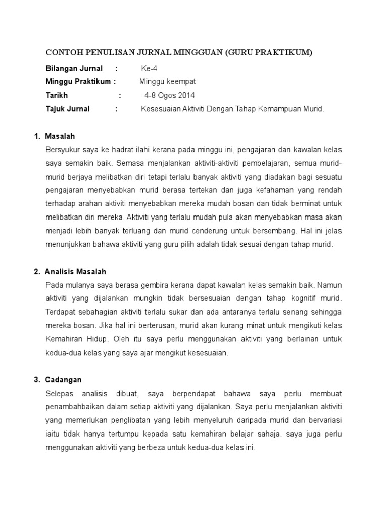 Jurnal reflektif membolehkan anda meneliti pengalaman. Contoh penulisan jurnal refleksi praktikum from id.scribd.com. An introduction to journalism, oxford university press,new york. So please help us by uploading 1 new document or like us to download Mothers' personality and its interaction with child temperament as predictors of parenting behavior. Urutan penulisan laporan praktikum : Documents similar to contoh penulisan jurnal praktikum. Report contoh penulisan jurnal refleksi praktikum. Ini termasuk juga teori teknik pendekatan. Misalnya, kamu mengambil sumber dari sebuah artikel di. Pada minggu kedua praktikum, saya menghadapi masalah dalam penggunaan bahan bantu mengajar dalam kalangan murid bagi pembelajaran dan pemudahcaraan modul kemahiran menulis. Use the download button below or simple online reader. Isu atau masalah ketika praktikum.